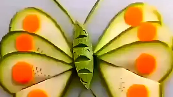 در این فیلم مشاهده می کنید که یک کدو به همراه تکه های هویج به شکل پروانه درآمده است.