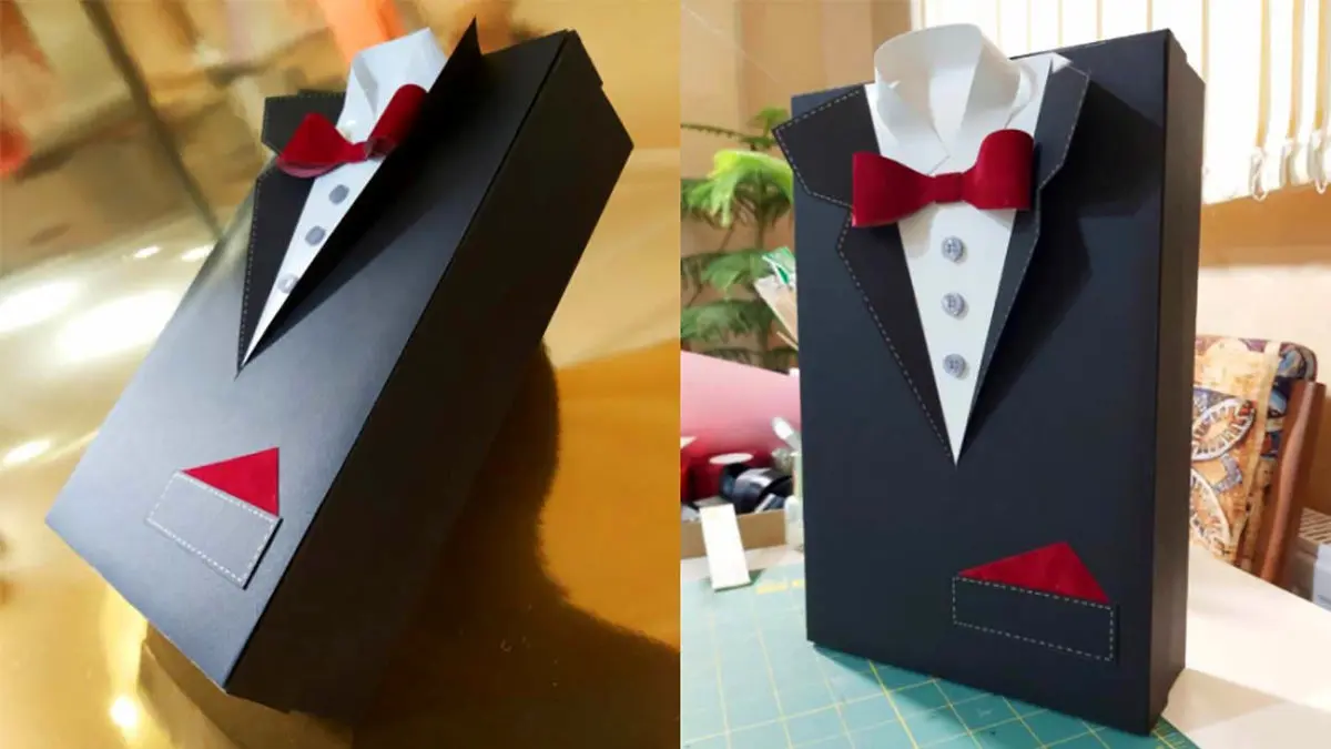 در ادامه، فیلمی از آموزش چگونگی کادو کردن هدیه به شکل لباس مردانه منتشر شده است.