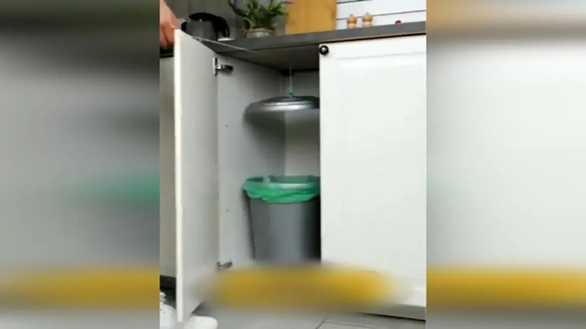 استفاده از سطل آشغال آشپزخانه به شکل متفاوت+ فیلم