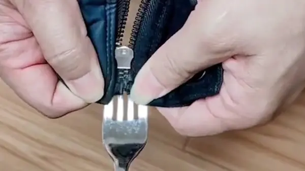 وقتی بخش فلزی زیپ روی قسمت های دندانه دار قرار گرفت به آرامی زیپ را بالا بکشید تا به اصطلاح در دندانه ها گیر کند و جا بیفتد. به همین راحتی زیپ دست ساز خود را می توانید استفاده کنید.