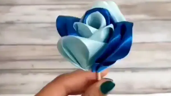 گل رز زیبایی را که مشاهده می کنید با استفاده از روبان ساخته شده است.