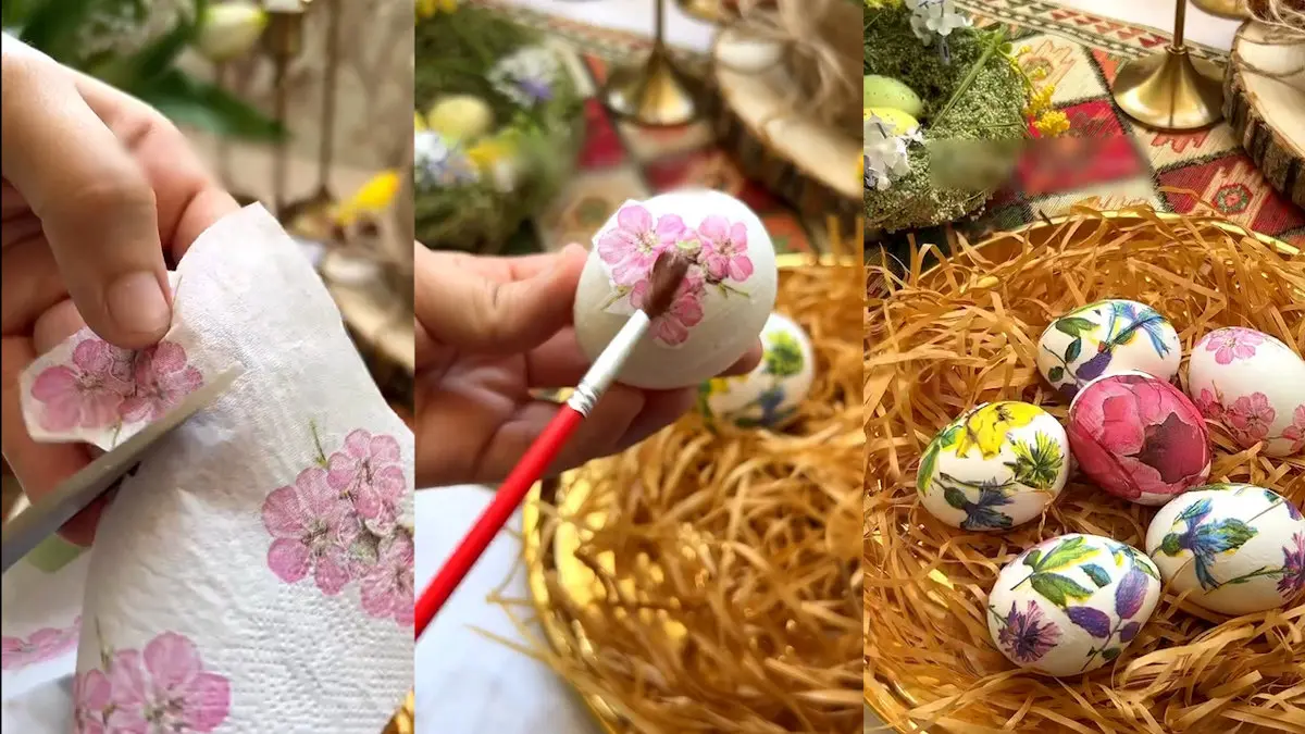 به گزارش رکنا، تخم مرغ هفت سین تان را به روشی که در فیلم می بینید طراحی کنید. کافی است زرده و سیفده تخم مرغ خام را جدا کرده و بعد از دستمال کاغذی طرحدار که اگر به شکل گل های رنگارنگ باشد بهتر است استفاده کنید. با قیچی به شکل مرتب هر طرح گل روی دستمال را ببرید و با استفاده از قلمو و سفیده تخم مرغ هریک از گل های کاغذی بریده شده را روی سطح تخم مرغ بچسبانید و بگذارید تا خشک شود. بدین ترتیب تخم مرغ عید شما با یک طراحی بهاره آماده است.