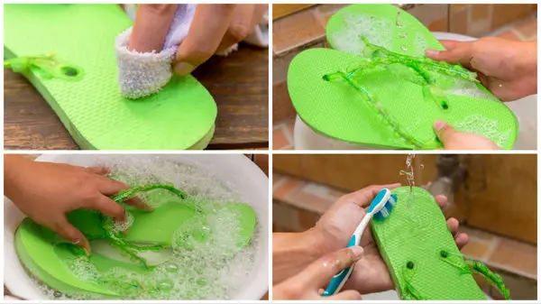 دمپایی شما اگر روفرشی است و نمیخواهید تایم زیادی آن را در آب قرار دهید. بهراحتی با این ترکیب معجزهآسا میتوانید به رفع جرم و بوی بد دمپایی خود بپردازید. کافی است با مقداری استون و سرکه ترکیبشده و یک دستمال مرطوب به تمیزکاری دمپایی خود بپردازید. دمپایی شما اگر اکسسوری دارد میتوانید از این ترکیب تنها برای کف دمپایی خود استفاده کنید. سپس با یک دستمال مرطوب تمیز حسابی مواد را از روی دمپایی پاککنید و در فضای باز اجازه خشک شدن به آن را بدهید. این کار هیچ آسیبی به دمپایی شما نمیزند بلکه سبب میشود سیاهی روی آن از بین برود.