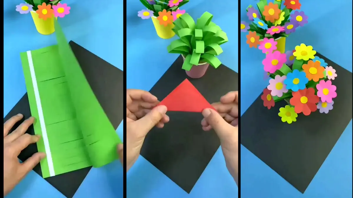 روش ساخت گلدانی از گل های رنگی + فیلم