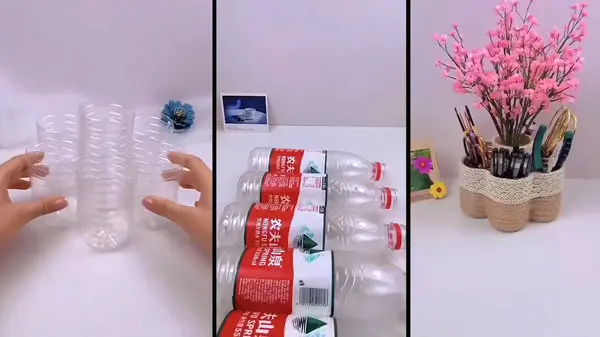 به گزارش رکنا، کاردستی امروز بسیار کاربردی است و برای کودکان و بزرگترها برای جادادن لوازم تحریر و لوازم آرایشی استفاده می شود. روش کار آن بدین شکل است که چند بطری خالی را از وسط بریده و کنار هم به شکل دایره ای دورتادور یک بطری مرکزی بچسبانید. انتهای آنها را برای زیباتر شدن کار با طناب کنفی پر کنید. در هر بخش آن می توانید وسایل مدنظرتان را قرار دهید.