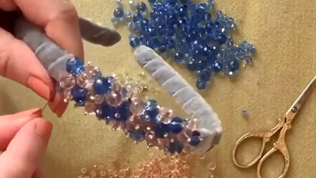 مطابق فیلم روی بخشی از تل را با منجوق های تزئینی رنگارنگ بدوزید و در پایان از این کاردستی پرکاربرد لذت ببرید.