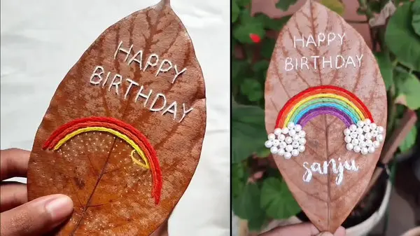 به گزارش رکنا، با نزدیک شدن به پاییز کاردستی ما هم رنگ و بوی پاییز را به خود گرفته است. اگر یکی از اعضای خانواده و یا دوست تان تولدش نزدیک است این کارت پستال که هنر خودتان است بهترین هدیه می تواند برای او باشد. کافی است روی برگ پاییزی که هنوز تازه است و خشک نشده با نخ سفید تولدت مبارک را بدوزید؛ حالا چه به زبان فارسی و چه به زبان انگلیسی و سپس در یک ردیف پایین تر از آن برای اینکه کارت پستال نشات گرفته از طبیعت تان بیشتر جلوه کند با رنگ های رنگین کمان یک رنگین کمان خوشرنگ را هم بدوزید. نتیجه کار در فیلم دیدنی است.