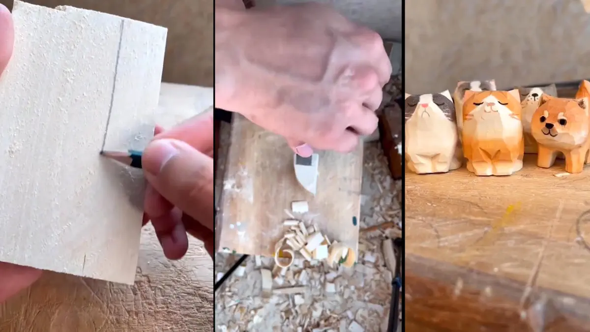 رکنا: این گربه ها تنها با استفاده از هنر چوب تراشی ساخته شده اند.