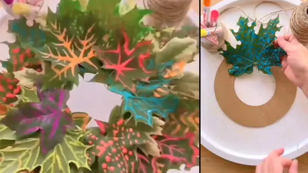به گزارش رکنا، این کاردستی حس و حال طبیعت را دارد چراکه با استفاده از ماژیک های رنگی نقاشی و طرح های زیبا و متفاوتی را روی رگ برگ ها و حاشیه ها و سطح برگ چنار که البته مصنوعی هستند ایجاد کرده اند و درنهایت این برگ های طراحی شده را روی یک حلقه از کاغذ مقوایی کنار هم چسبانده اند و یک تابلوی برگ آویز زیبا درنهایت به دست آمده است.