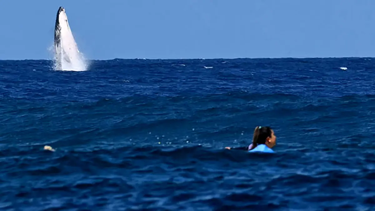 رکنا: یک نهنگ نسبتا بزرگ برای دقایقی مسابقات موجسواری زنان در المپیک را تحتالشعاع قرار داد.