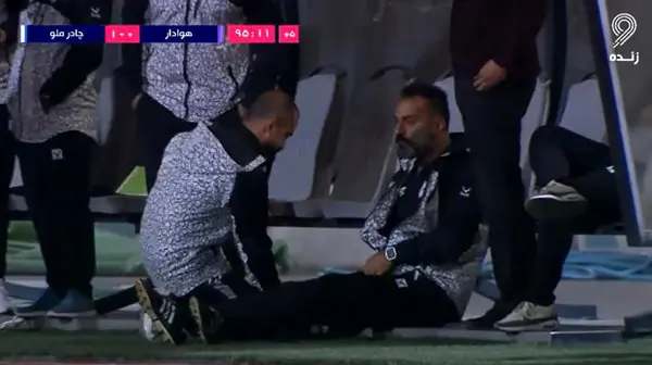 رکنا: حنیف عمران زاده در ثانیه های پایانی دیدار با هوادار دچار مشکل در قفسه سینه اش شد و دقایقی را با حال بد گذراند.