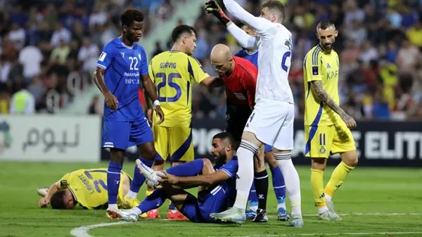 در همان دقیقه هفتم دیدار استقلال و النصر بود که پاس رامین رضاییان در محوطه جریمه به مهرداد محمدی رسید. این بازیکن پس از یک چرخش، قصد داشت تا ضربه اش را روانه دروازه حریف کند که پای او با پای آیمریک لاپورت برخورد کرد و ستاره آبی ها روی زمین افتاد.