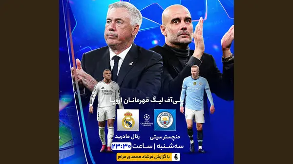 رکنا: فرشاد محمدیمرام، امشب ساعت ۲۳:۳۰ بازی منچسترسیتی - رئالمادرید را گزارش میکند.