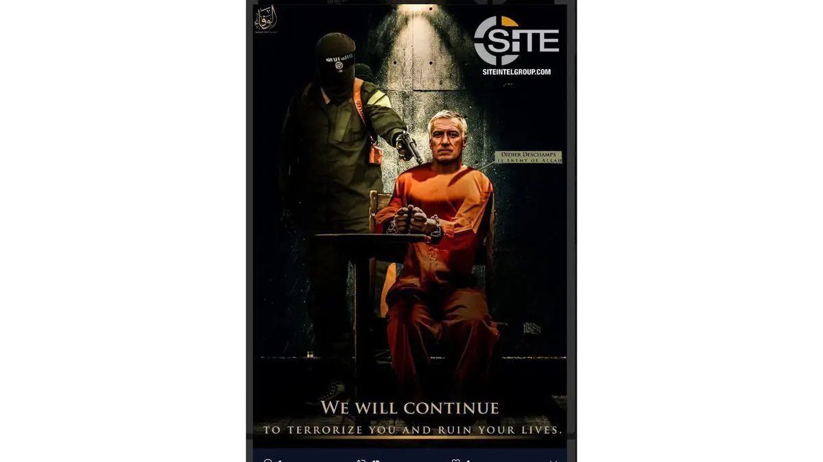رکنا: گروهک تروریستی داعش بعد از تهدید لیونل مسی، این بار دیدیه دشان سرمربی تیم ملی فرانسه را هدف خود قرار داده است و او را دشمن خدا معرفی کرده است
