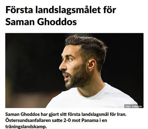 رکنا: اولین گل سامان قدوس برای ایران مورد توجه رسانه سوئدی قرار گرفت.