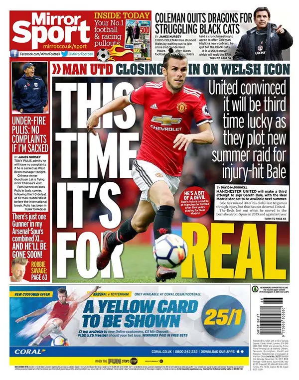 یونایتد در تابستان گذشته به دنبال جذب گرت بیل بود ولی رئال با جدایی ستاره ولزی مخالفت کرد. بیل به علت مصدومیت، 40 بازی از 60 بازی اخیر رئال را از دست داده ولی مورینیو همچنان به دنبال جذب ستاره 29 ساله است.