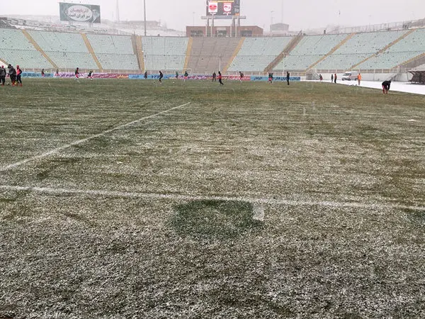 رکنا: ساعتی پیش از آغاز دیدار تیم های تراکتورسازی تبریز و سپیدرود رشت، برف شدیدی در ورزشگاه یادگار امام شروع به باریدن کرد.