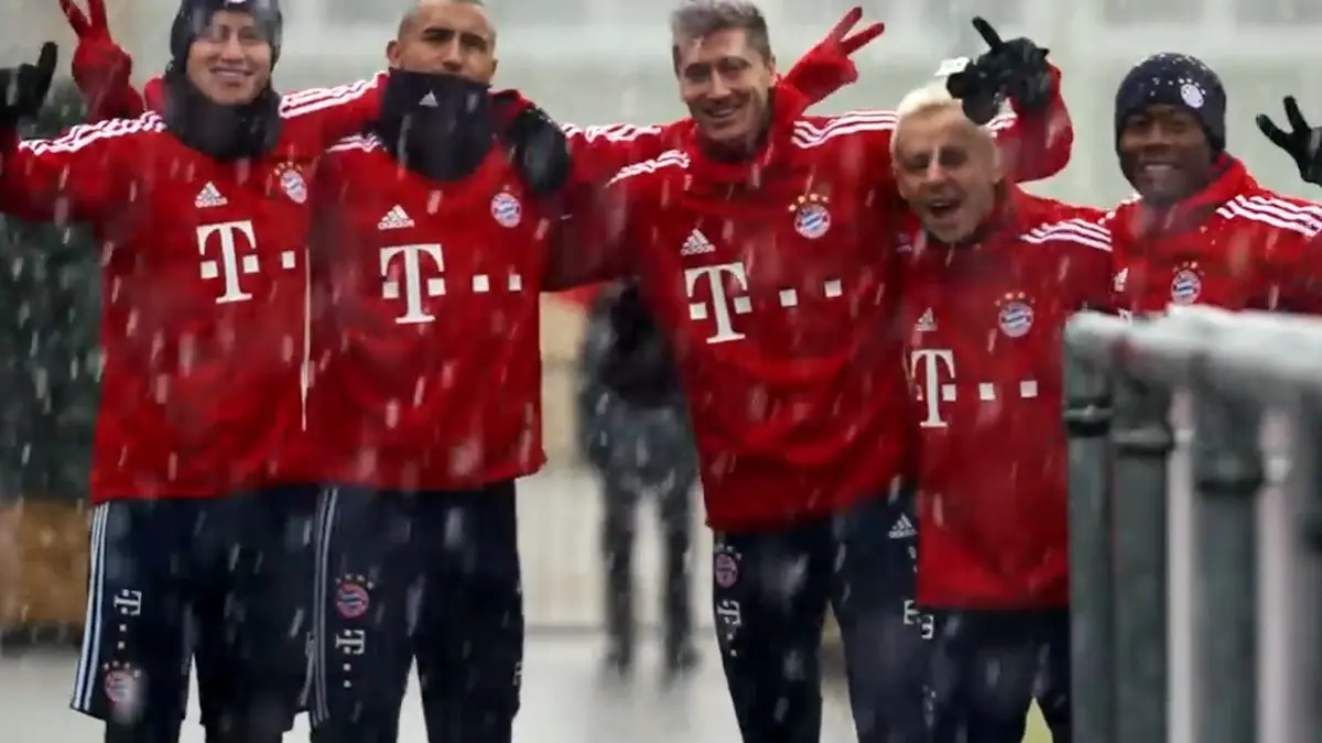 اولین تمرین برفی بازیکنان بایرن مونیخ + فیلم