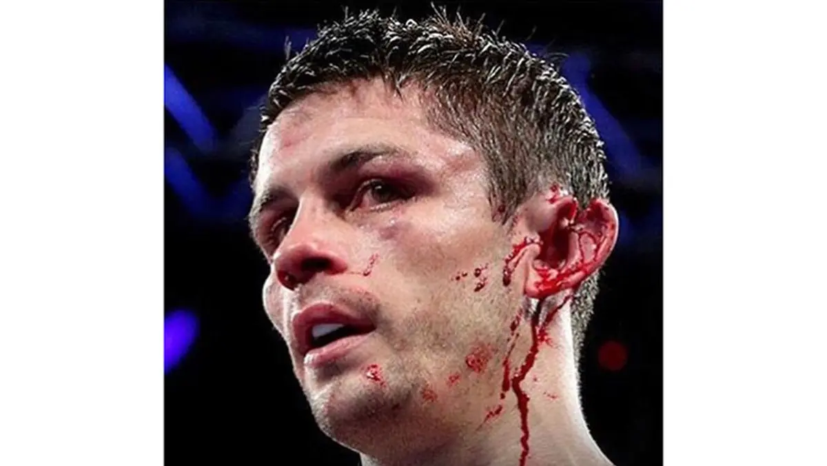 رکنا: گوش یک بوکسور انگلیسی در حین مبارزه آنچنان جراحت دید که نزدیک بود به طور کامل کنده شود.