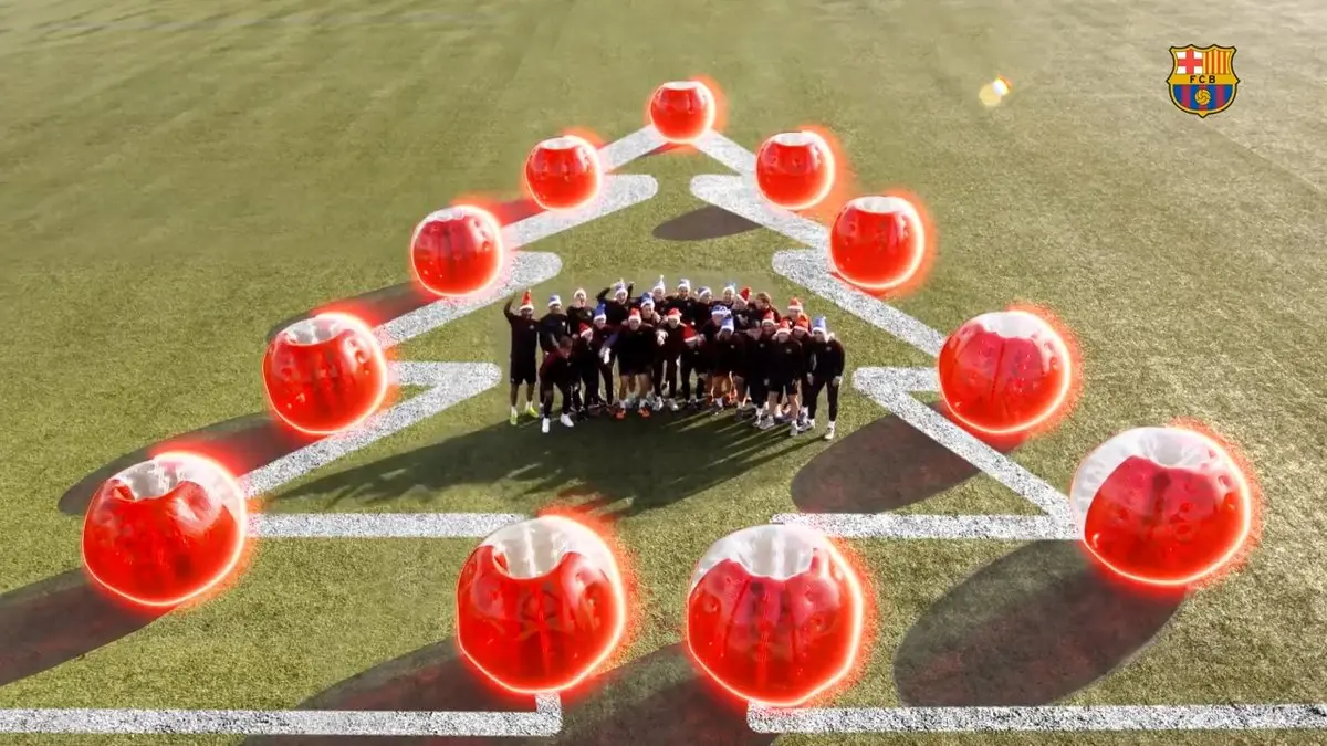 مسابقه جذاب فوتبال حبابی بارسایی ها به مناسبت کریسمس + فیلم