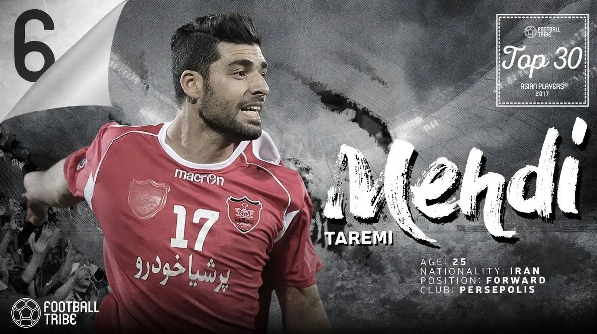 سایت «فوتبال ترایب» اندونزی در گزارشی اقدام به معرفی 30 فوتبالیست برتر قاره آسیا در سال 2017 کرد که براین اساس مهدی طارمی، مهاجم تیم پرسپولیس در رده ششم این ردهبندی ایستاد. عمر خربین، مهاجم سوری تیم الهلال نیز بهعنوان بهترین بازیکن آسیا در این سال معرفی شد.