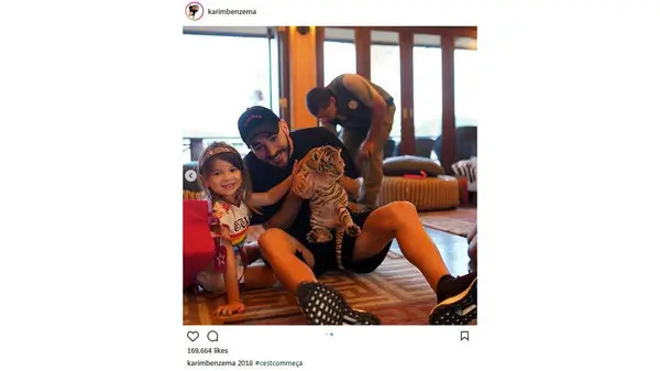 کریم بنزما با تبریک سال نوی میلادی به هوادارانش عکس هایی از خود و توله ببر منتشر کرد.