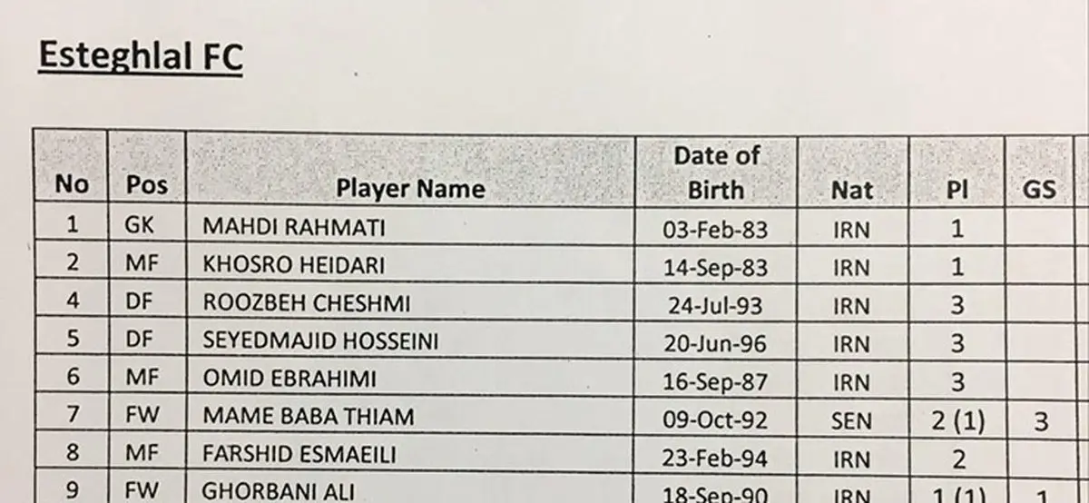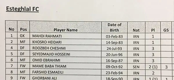 رکنا: عداد گل های آسیایی مهاجم سنگالی استقلال مشخص نیست.