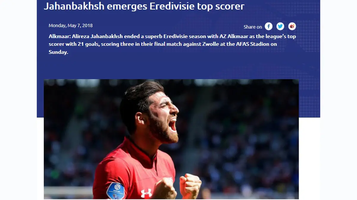 جهانبخش ستاره ایرانی آلکمار در فصلی که گذشت همهکاره تیمش بود و توانست با 21 گل به عنوان آقای گل لیگ هلند دست یابد. سایت AFC با اشاره به درخشش جهانبخش و کسب آقای گلی به عملکرد این بازیکن در بازی روز گذشته مقابل زووله پرداخته است.
