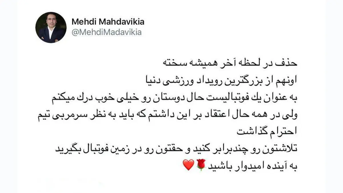 واکنش توئیتی مهدی مهدوی کیا برای خط خوردههای تیم ملی +عکس