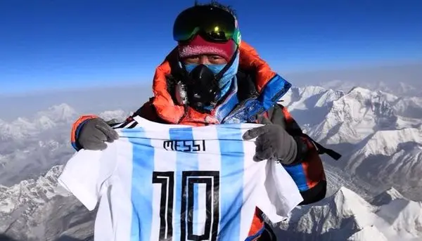 رکنا: دان ژنگ لوبو پس از فتح قله "اورست" پیراهن لیونل مسی را به نمایش گذاشت.
