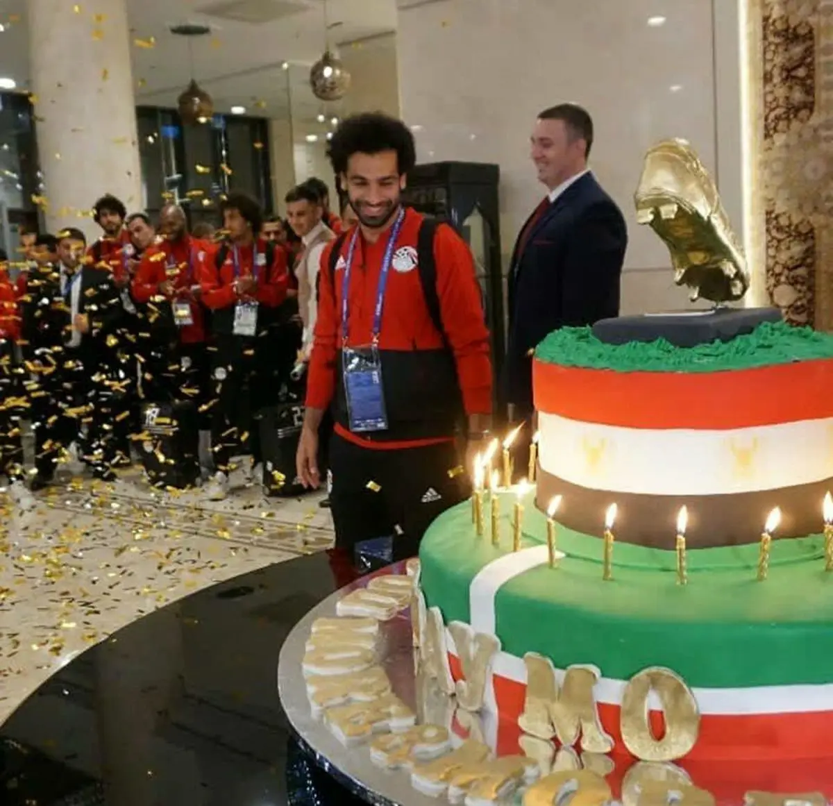 رکنا: هواداران فوتبال در چچن به مناسبت تولد 26 سالگی محمد صلاح، یک کیک 100 کیلویی که روی آن کفش طلا نصب شده بود، به صلاح هدیه کردند و لبخند را به روی لب او آوردند.