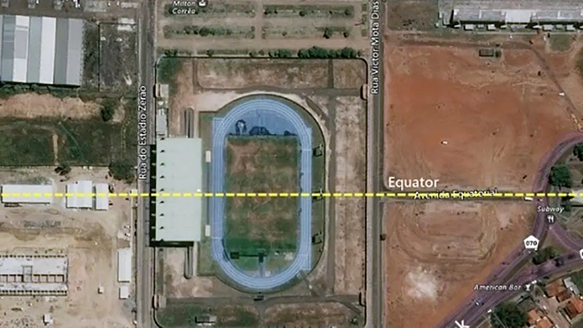 برزیل دارای سیستم ژئودتیک مخصوص کشور خود با نام سیستم ژئودتیک برزیلی است. هنگامی که کارشناسان برای تطبیق خط استوا با خط میانی زمین فوتبال به استادیوم میلتون کورکا رفتند به درستی دریافتند که خط میانی زمین دقیقن منطبق با خط استوا است. اما اگر بخواهیم بر مبنا سیستم بینالمللی WGS 84 عمل کنیم باید دستگاه GPS را در دست بگیریم و دقیقن از مرکز زمین 2 ثانیه به طرف شمال حرکت کنیم تا به خط استوا برسیم.مردم محلی که در کنار استادیم زندگی میکنند میگویند: بدون توج به اینکه این مکان در مرکز زمین است یا نه فقط فوتبال خوبی را بازی کنید.