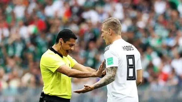 به گزارش رکنا روز گذشته (یکشنبه) تیم‌ ‌ملی فوتبال آلمان، مدافع عنوان قهرمانی با یک گل مغلوب مکزیک شد. در این دیدار خطایی به سود مکزیک اعلام شد که تونی کروس به این تصمیم علیرضا فغانی، داور ایرانی اعتراض کرد و این داور نیز برای دور کردن هافبک آلمان مجبور شد او را کمی به عقب براند.