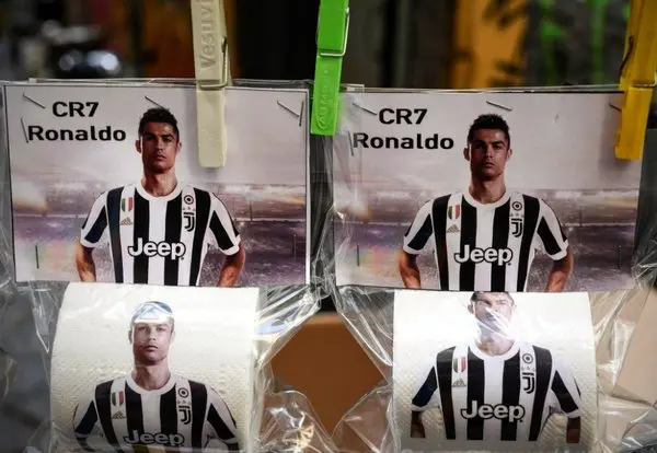 رکنا: پس از پیوستن رونالدو ستاره فوتبال جهان به تیم یوونتوس که با سر و صدای زیادی نیز همراه بود بازار فروش لباسی های این باشگاه با شماره این بازیکن و همچنین لباس های ورزشی با تصویر رونالدو داغ شده است. اما در یک اتفاق عجیب در شهر ناپل ایتالیا طرحهایی از باشگاه یوونتوس و تصویر کریس رونالدو بر روی دستمالهای دستشویی به فروش میرسد.