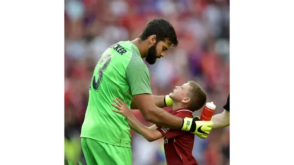 سنگربان برزیلی لیورپول این پسر کوچک را بغل کرد، بوسید و دستکشهایش را به او هدیه داد تا یکی از جالبترین و خاصترین صحنههای فوتبال را رقم بزند.