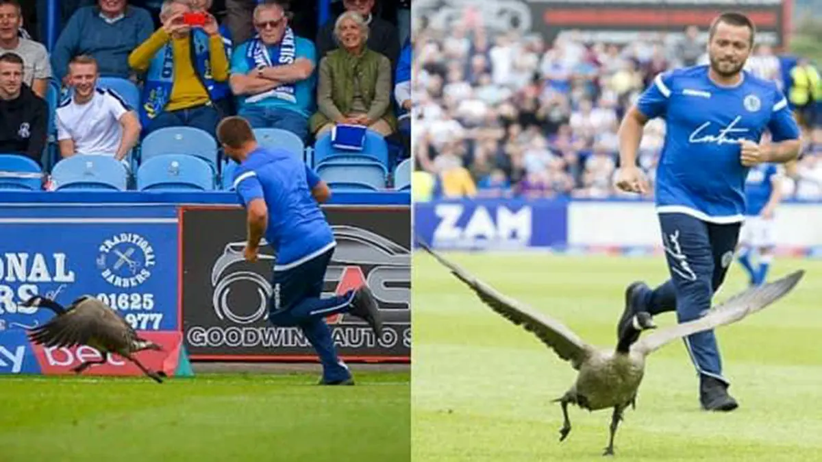 در دنیای فوتبال گاهی اتفاقات جالبی رخ می دهد که باعث خنده علاقه مندان به این رشته ورزشی می شود. در هفته ای که گذشت در لیگ دسته چهارم فوتبال انگلیس اتفاق عجیب و خنده داری افتاد، در حالی که بازی تیم های گریمزبی و مک لسفیلد در جریان بود ناگهان یک غاز که معلوم نیست چگونه وارد ورزشگاه شده بود به داخل زمین مسابقه آمد و باعث توقف بازی شد.