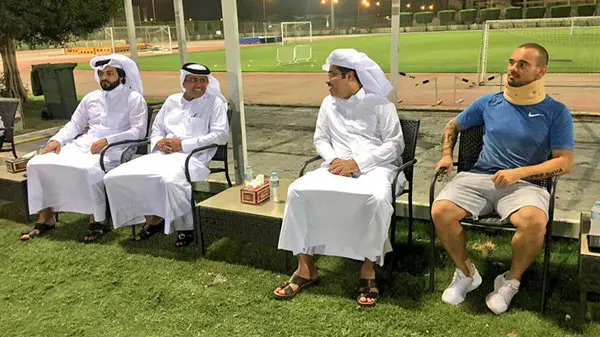 رکنا: هافبک نامدار تیم الغرافه قطر یک روز از پس از حادثه رانندگی در تمرین این تیم حضور یافت.