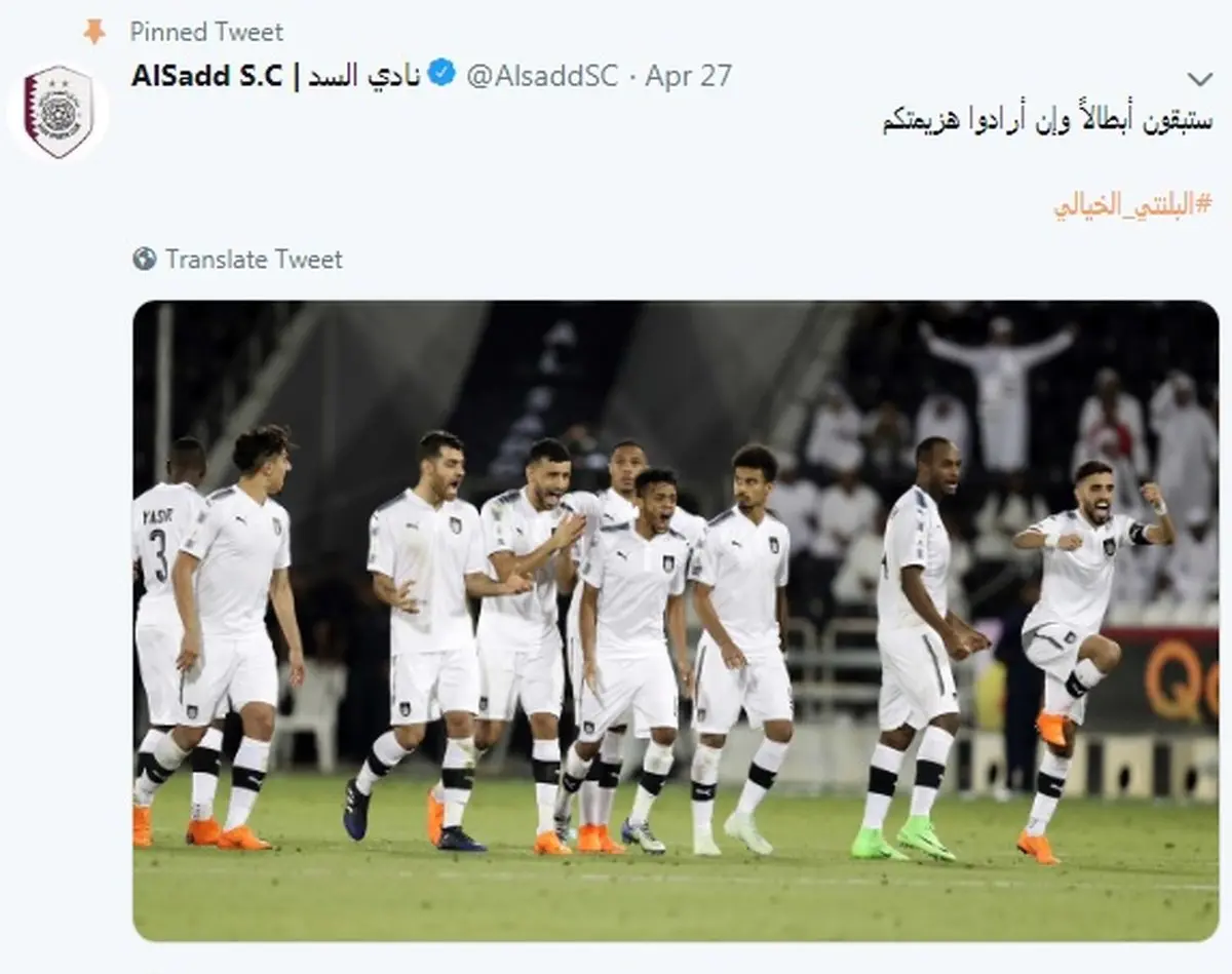 رکنا: سایت رسمی السد بعد از حذف از لیگ قهرمانان تیم خود را همیشه قهرمان خواند.