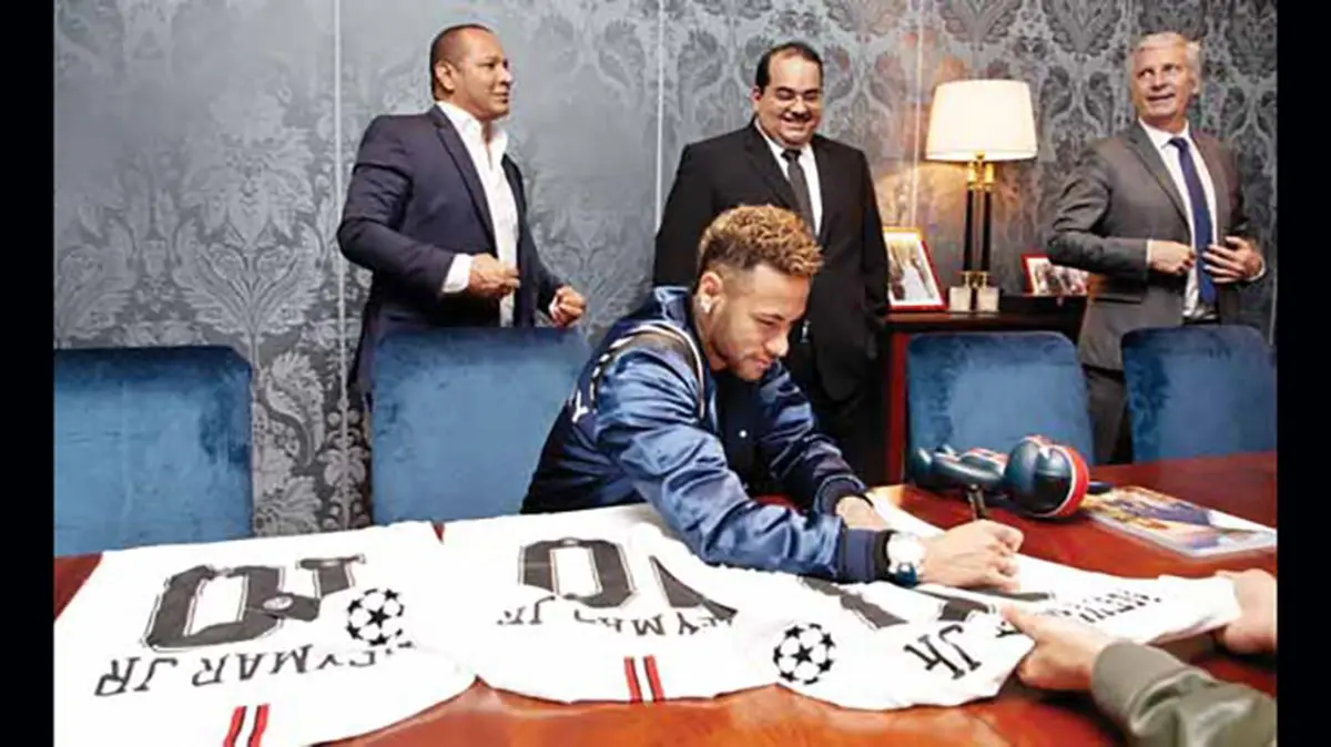 نیمار پس از درخشش در سانتوس برزیل به بارسلونا پیوست و عملکرد فوق العاده ای در این تیم داشت و پس از حضور در نیوکمپ با عقد قراردادی تاریخی به باشگاه پاری سن ژرمن رفت و گران قیمت ترین انتقال تاریخ فوتبال لقب گرفت و شرکت سرمایه گذاری ورزشی قطر با پرداخت مبلغی رکورد شکن هزینه این انتقال سرسام آور را تقبل کرد.