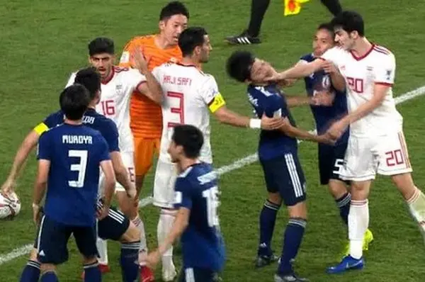 رکنا: بعد از گل سوم تیم ژاپن به ایران در آخرین دقایق بازی، خشونت بین بازیکنان دو تیم مشاهده شد تا جاییکه در دقیقه ۹۲ بازی بین بازیکنان دو تیم درگیری ایجاد شد.