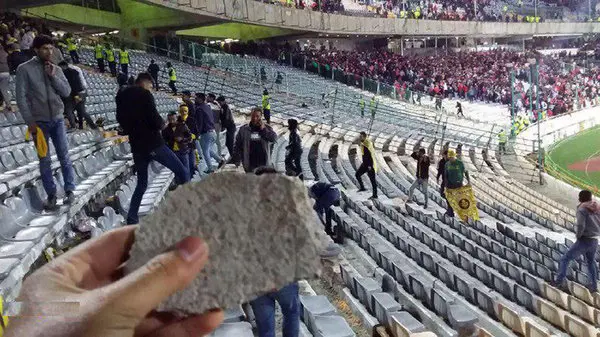 سنگ هایی که هواداران دو تیم سمت یکدیگر پرتاب کردند+تصاویر