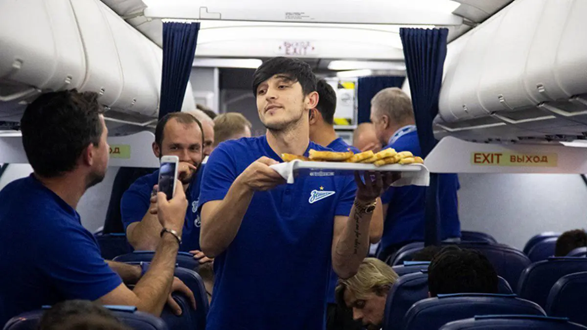 رکنا: سردار آزمون در قامت مهماندار هواپیما ظاهر شد و پس از انتشار خبر قهرمانی زنیت در هواپیما کیک اوستیایی میان دیگران تقسیم کرد.