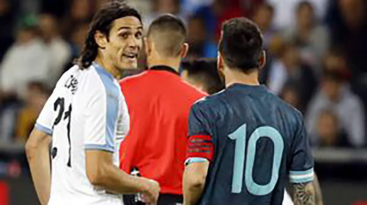 در جریان بازی خطای ماتیاس وسینو، هافبک اروگوئه، باعث عصبانیت شدید لیونل مسی شد و این فوق ستاره آرژانتینی به شدت نسبت به این موضوع اعتراض کرد. بعد از اعتراض مسی، ادینسون کاوانی نیز وارد درگیری شد؛ موضوعی که باعث شد یک بحث نسبتا شدید بین کاوانی و مسی به وجود بیاید.