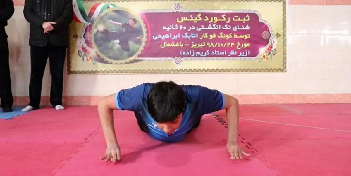 اتابک ابراهیمی ورزشکار 17 ساله تبریزی که به صورت تخصصی ورزشکار رشته رزمی کونگ فو است، توانست با ثبت تعداد 46 شنای سوئدی در 60 ثانیه، رکورد گینس را تغییر دهد. در حال حاضر نیز اقدامات لازم برای این موضوع به ثبت رسیده و وی منتظر بررسی نهایی سازمان جهانی رکوردهای گینس است.