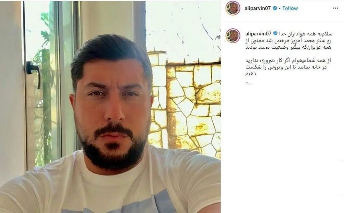 به گزارش رکنا، علی پروین پیشکسوت تیم ملی فوتبال ایران و باشگاه پرسپولیس با انتشار پستی اینستاگرامی خبر از ترخیض پسرش (محمد پروین) از بیمارستان داد.