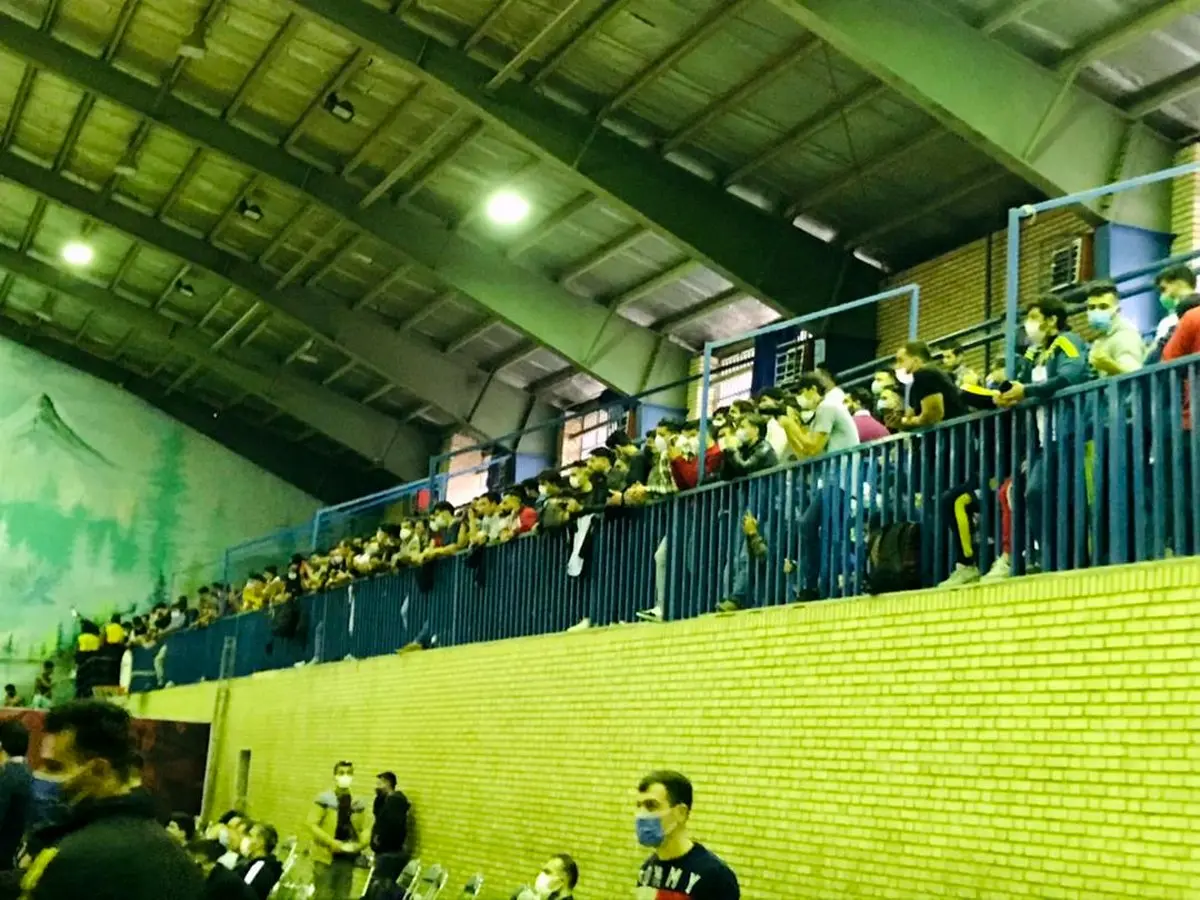 متاسفانه علی رغم تاکیدات بسیار بر لزوم رعایت دستورالعمل های بهداشتی امروز شاهد اتفاق ناگواری در محل برگزاری مسابقات در اسلامشهر بودیم. در ابتدای امر صرفا ورزشکاران همراه تعداد معدودی از همراهان خود در سالن حضور پیدا کردند اما رفته رفته تعداد تماشاچیان بیشتر شد به طوری که طبقه فوقانی سالن مملو از تماشاچیانی شده بود که برای آن ها شرایط رعایت دستورالعمل های بهداشتی وجود نداشت و پس از دو سه ساعت تمام سالن پر از تماشاچیان شده بود.