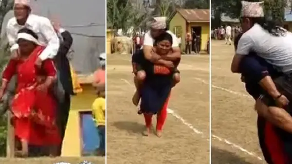این مسابقه در تاریخ ۸ مارس به مناسبت روز جهانی زن در دهکده «دِوگِهات» برگزار شد. بنا به گزارش یکی از رسانههای محلی در این مسابقه ۱۶ زوج شرکت داشتند که باید مسافت ۱۰۰ متری را طی میکردند. در ویدئوی منتشر شده تلاش زنان محلی شرکت کننده برای رسیدن به خط پایان را نشان میدهد.