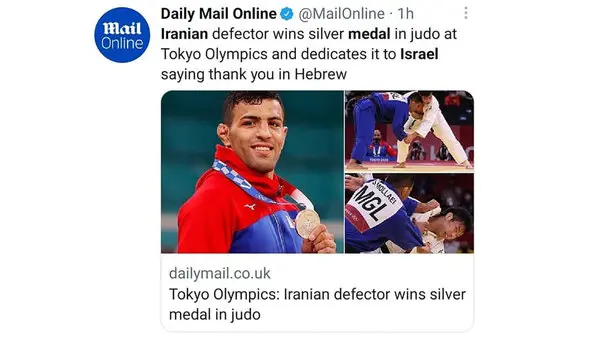 رکنا: سعید مولایی با لباس تیم ملی مغولستان توانست به مدال نقره المپیک 2020 توکیو دست یابد. او مدالش را به رژیم صهیونیستی داد.