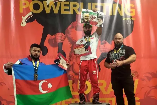 قهرمان کشورمان در آستانه ایام شهادت حضرت زهرا و سالگرد شهادت سردار دل‌ها، حاج قاسم سلیمانی در جریان مسابقات قهرمانی پاورلیفتینگ قدرتی جهانی حماسه‌ای بزرگ را رقم زدند و با حضور روی سکوی قهرمانی دنیا تصویر رهبر فرزانه انقلاب حضرت آیت‌الله خامنه‌ای و سردار شهید سلیمانی را بالای سر برد.