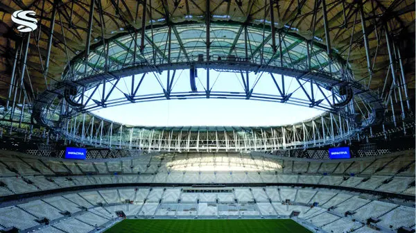 بزرگترین استادیوم‌های جام جهانی شاهد استفاده‌های تکنولوژیکی پیشرفته چه در سطح نورپردازی داخلی و چه در سطح بیرونی است که باعث می‌شود رنگ نمای بیرونی این نماد معماری در شب و روز تغییر کند و تبدیل به مرواریدی شود که در محیط اطراف خود می‌درخشد.